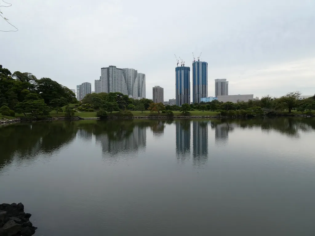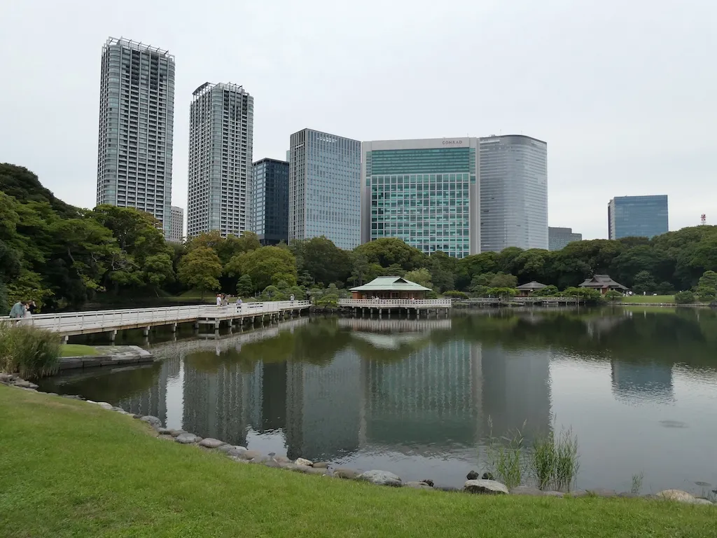 浜離宮恩賜庭園の近くにあるビルから公園を見下ろすことができそうなので、これらのオフィスビルで働いている人たちが羨ましいと感じました。
